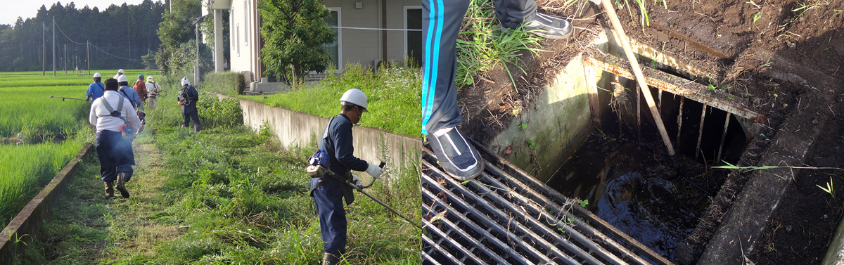 清掃排水溝的情形