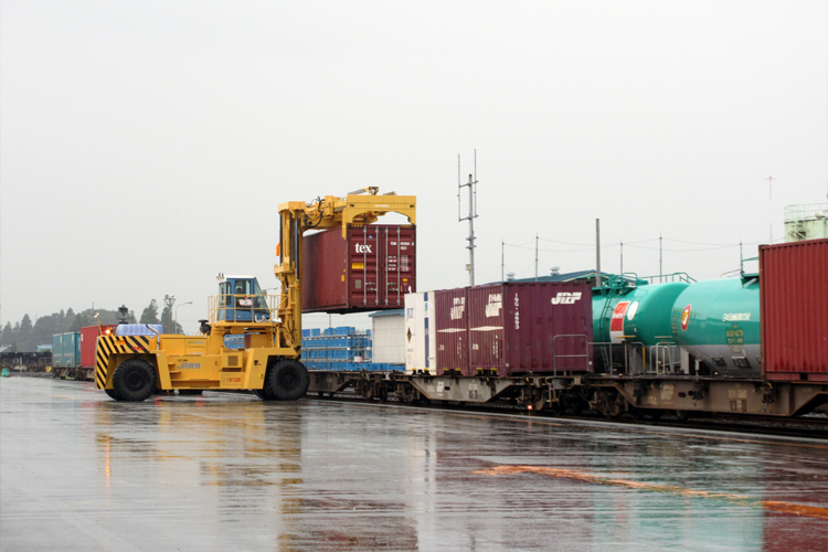 2005年1月,針對JUKI電子工業(yè)(現在的JUKI產機技術株式會社,秋田縣橫手市)制造的芯片貼片機的出口方面的內陸運輸,將其擴大至秋田~京濱港之間的鐵路運輸。2010年3月之后,因JR盛崗貨物中轉站新建無水港(在內陸地區(qū)設置的海上集裝箱中轉站),開始從盛崗至京濱之間的鐵路運輸。