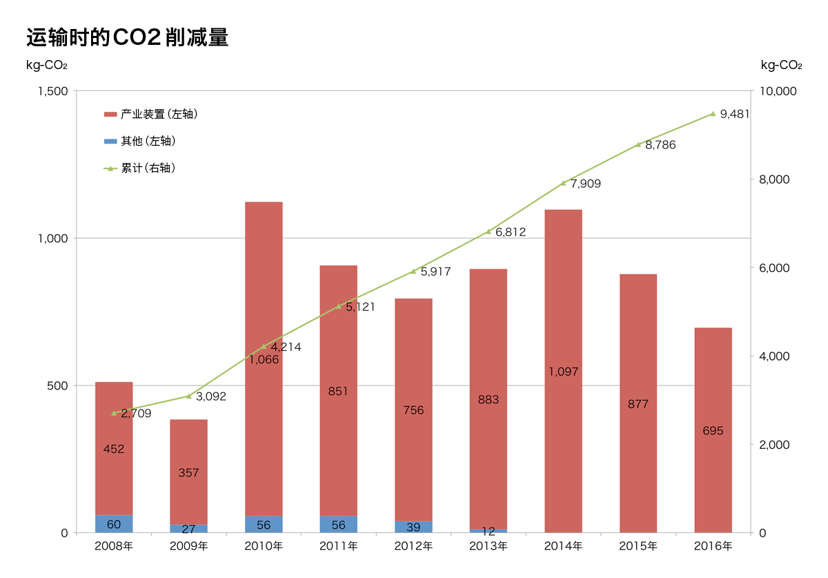 通過使用以無水港為中介的集裝箱運輸,成功削減了CO?。