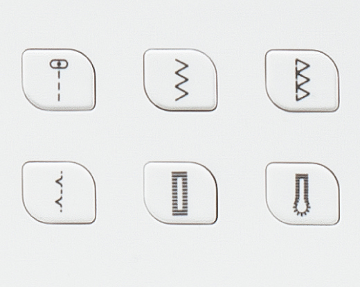 共有6種即選線跡,只需按下其中任何一個按鈕即可快速進行該線跡模式的縫制。