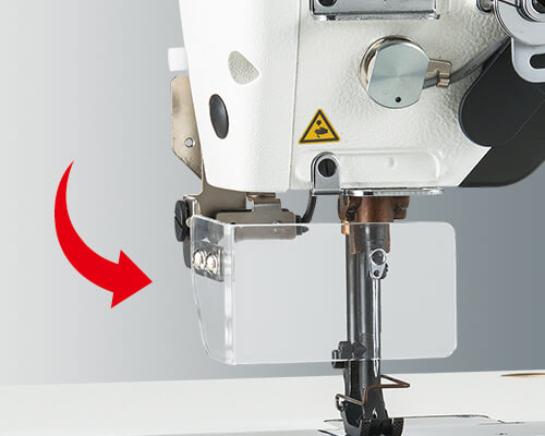 保護(hù)縫紉工免受縫制過程中因斷針而造成的傷害。如果打開了護(hù)目鏡,縫紉機(jī)就不會(huì)啟動(dòng),所以即使忘記切斷電源,在更換機(jī)針等時(shí)也不會(huì)意外的啟動(dòng)縫紉機(jī)。