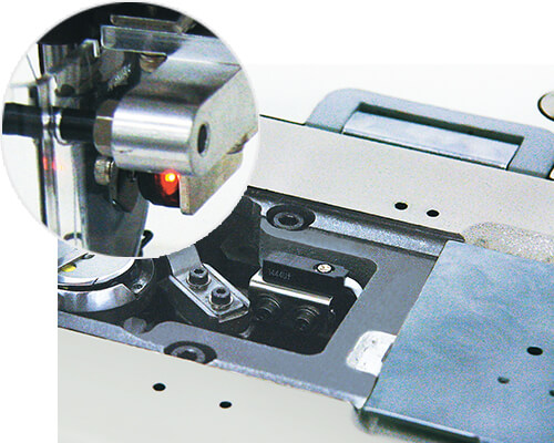 檢測(cè)旋梭的過線,并監(jiān)視跳針。檢測(cè)到跳針時(shí),會(huì)發(fā)出蜂鳴聲并亮起紅燈,縫紉機(jī)會(huì)停止轉(zhuǎn)動(dòng)??p紉工可以專心工作,