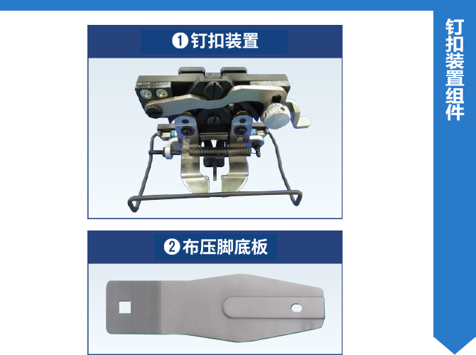 此組件是將套結(jié)縫紉機(jī)改造為釘扣縫紉機(jī)的夾扣裝置。