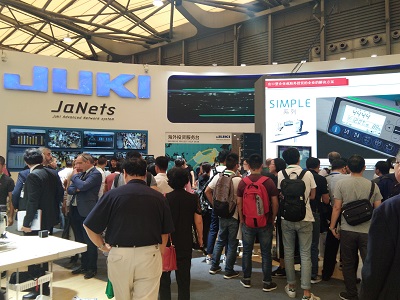 JUKI是以智能工廠的解決方案「支持用自動(dòng)化和機(jī)器人化縫紉機(jī)來作業(yè)」、「對(duì)數(shù)碼縫紉機(jī)進(jìn)行縫紉數(shù)值管理」、「用JaNets使工廠全體網(wǎng)絡(luò)化」為主、展示了工業(yè)用縫紉機(jī)78臺(tái)、家庭用縫紉機(jī)20臺(tái),吸引了很多客人到場(chǎng)。另外,為了考慮進(jìn)軍海外的客戶設(shè)置「進(jìn)軍海外投資咨詢角」、對(duì)JUKI的全球化展開進(jìn)行說明,讓很多客戶來跟JUKI商談的話,之前和之後也可以安心了。理解到可以做到這樣地步的,只有JUKI。