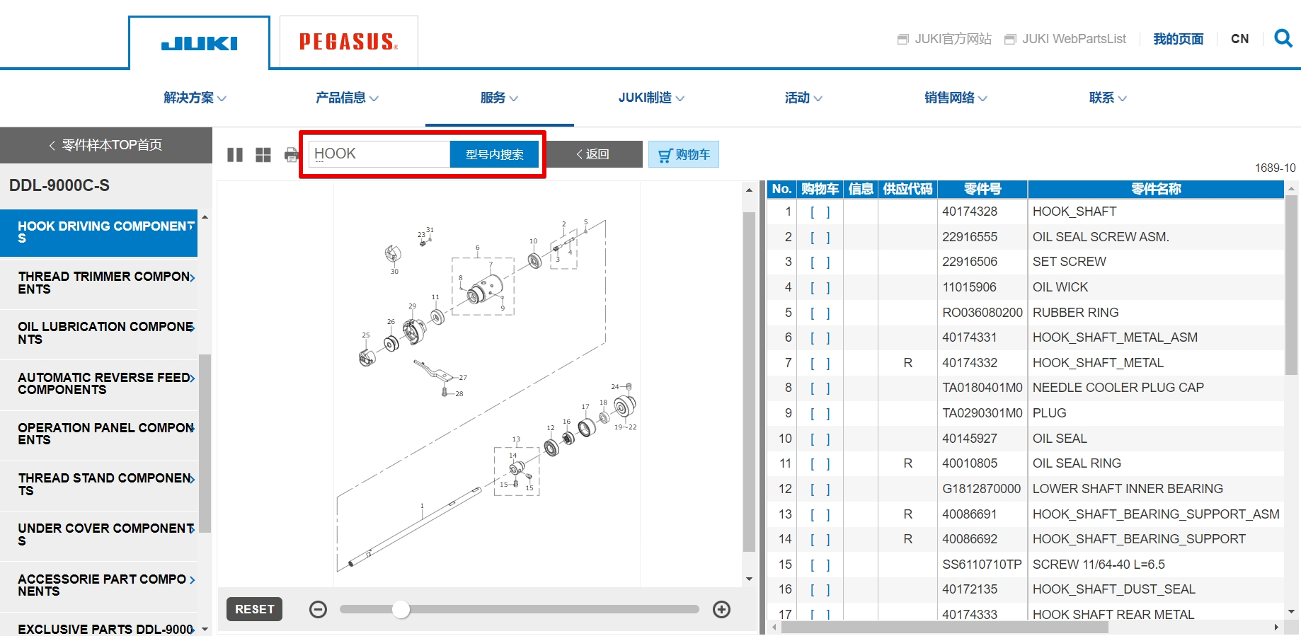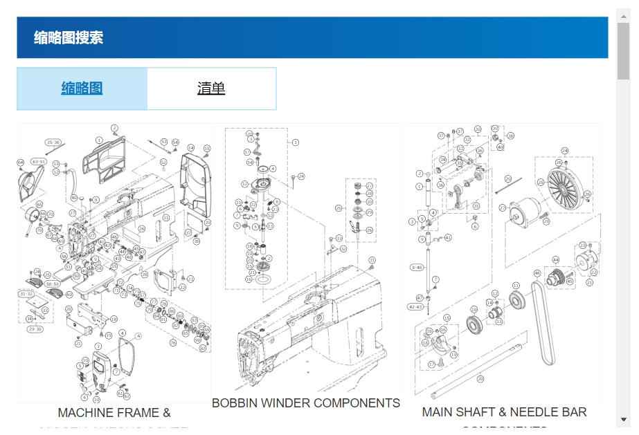 JUKI WebPartsList有充實的查找所需部件的功能。