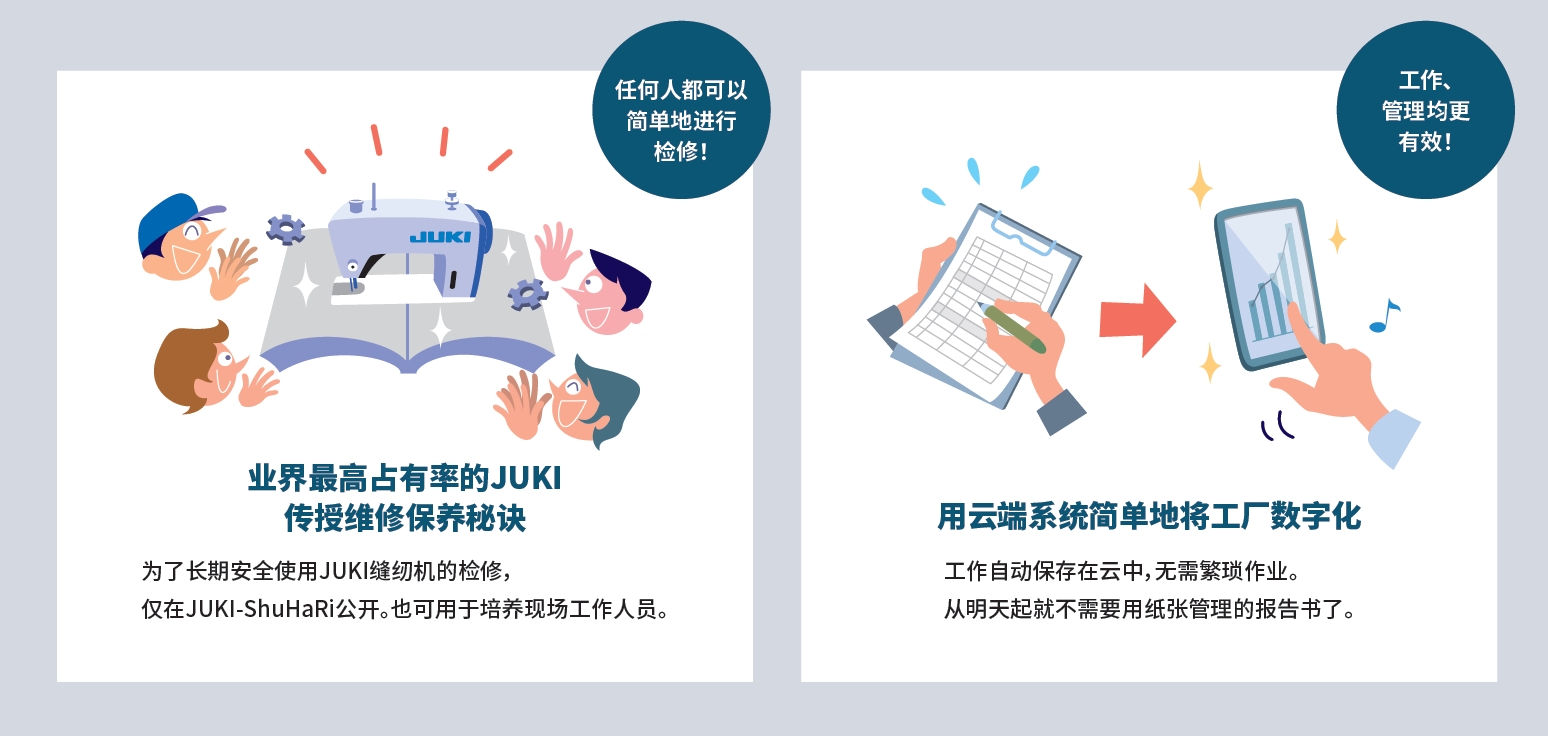 JUKI-ShuHaRi是一種服務(wù),運(yùn)用智能手機(jī)?個(gè)人電腦等的IoT機(jī)器,支持縫紉機(jī)維修及解決縫制現(xiàn)場(chǎng)困難!