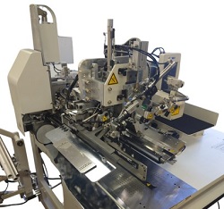 帶有單針停止功能的雙針平縫機和電子調(diào)節(jié)式嵌入式角刀,能夠?qū)崿F(xiàn)自動縫制平行雙嵌條、平行單嵌條、斜雙嵌條、斜單嵌條、梯形縫制(帶帶蓋和無帶蓋)。因為裝備了帶蓋自動供給裝置,包括設置在內(nèi)的循環(huán)時間縮短,生產(chǎn)效率大幅提升。