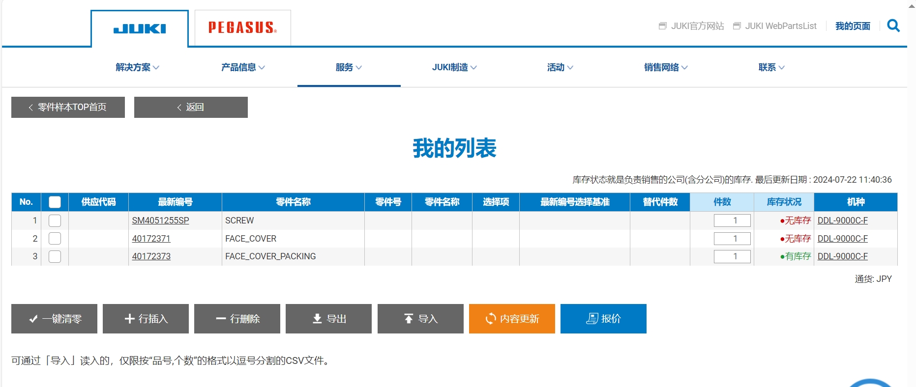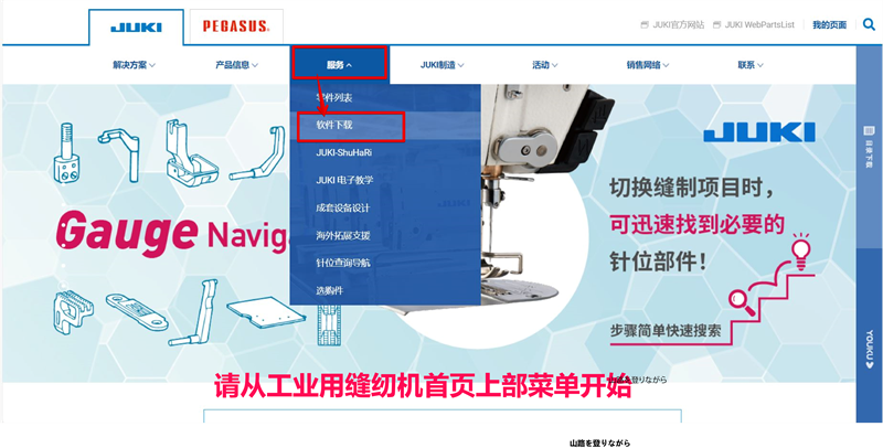 在工業(yè)用縫紉機線上服務(wù)注冊后,即可使用JUKI WebPartsList。