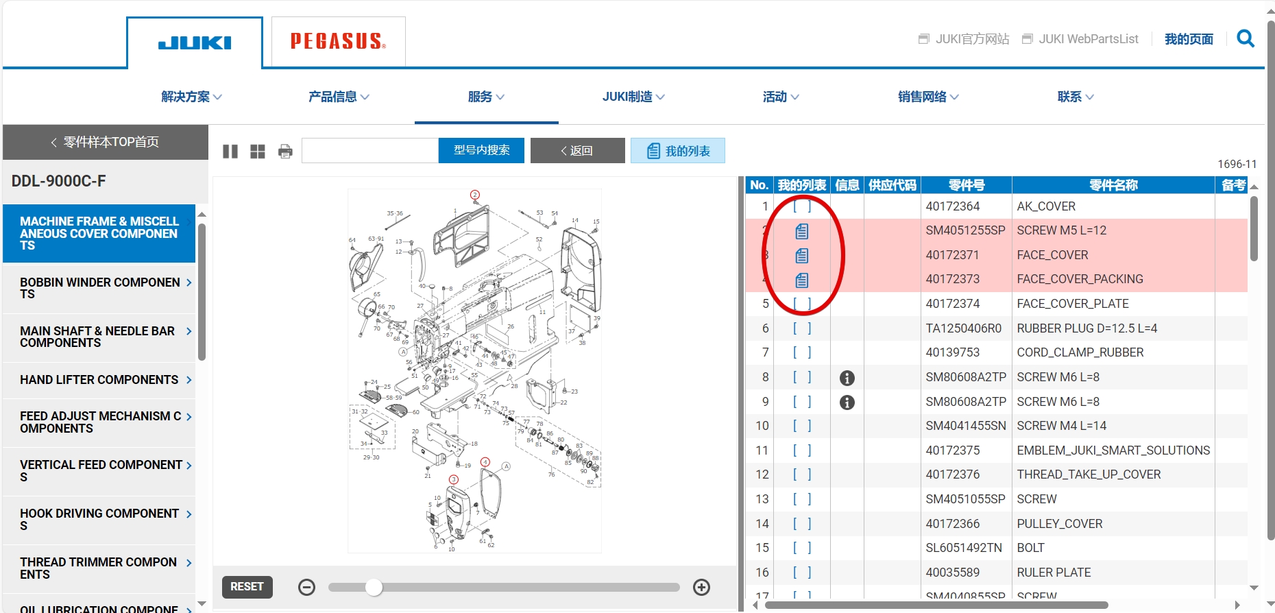 JUKI WebPartsList有充實的查找所需部件的功能。