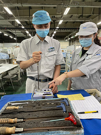 發(fā)揮生產(chǎn)多種多樣量產(chǎn)機(jī)型的優(yōu)勢(shì),構(gòu)建公司內(nèi)部檢定制度,積極培育多能工化人才。
