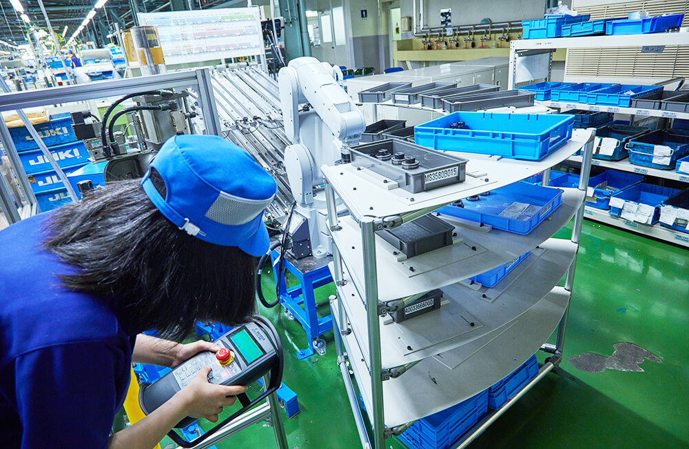 組裝活用PC監(jiān)視器畫面顯示安裝順序及需要配件、工具的“電子單元式生產(chǎn)”方式,向混流方式、策略方式等更高效的生產(chǎn)系統(tǒng)不斷進化。