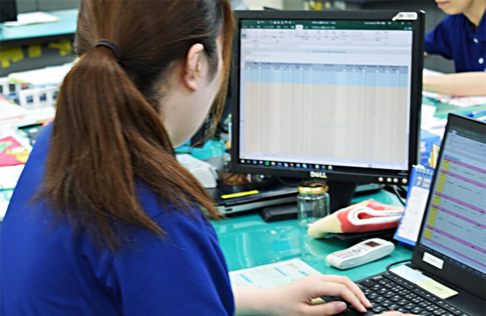 是為生產(chǎn)工業(yè)用縫紉機購買所需原材料及配件的部門。多摩總公司也進行調(diào)配,因此邊互相連攜、邊按照生產(chǎn)計劃,在需要的時刻以合理價格購入必要數(shù)量的高品質(zhì)資材。