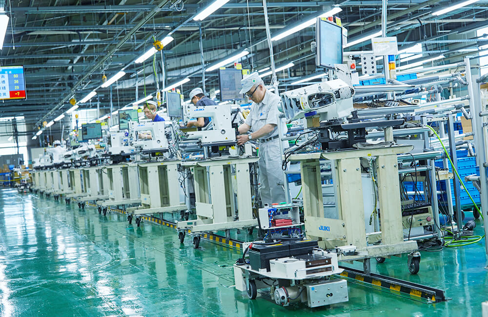 為了高品質(zhì)、無浪費、高效率地進行工業(yè)用縫紉機的生產(chǎn),專心致力于實現(xiàn)智能化工廠的目標。