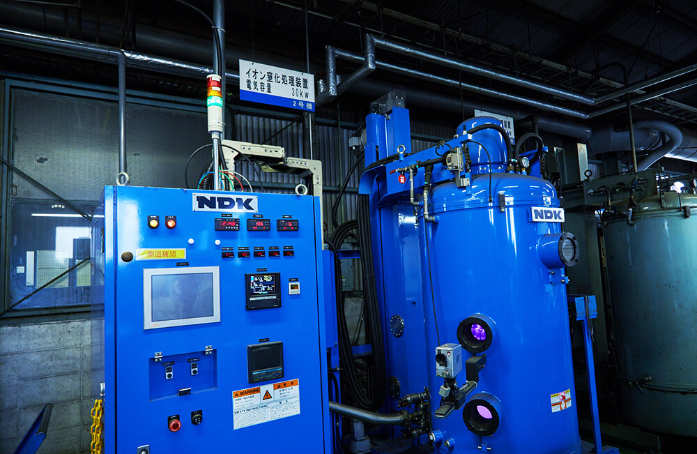 吹動(dòng)氮?dú)庾兂蒒+離子、使處理品表面帶電,通過使活性化氮元素?cái)U(kuò)散而使表面硬化的方法??商幚頊囟葹?00℃~570℃。