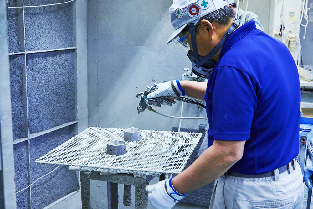 采用可提高抑制涂裝脫落及各種各樣耐性效果的專用藥品,可對涂裝進(jìn)行最佳預(yù)處理。另外,定期進(jìn)行日常藥品濃度管理及藥品制造廠的內(nèi)部成分管理來保持品質(zhì)穩(wěn)定。