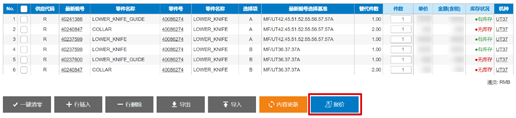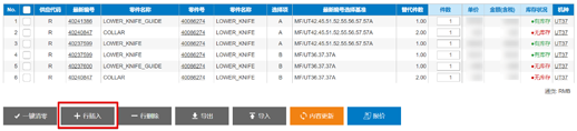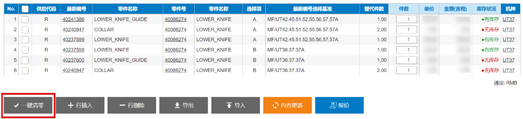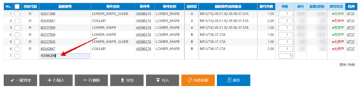 通過(guò)行插入輸入品號(hào)后,請(qǐng)點(diǎn)擊「內(nèi)容更新」按鈕,更新品號(hào)信息。