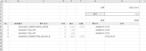| 零件號(hào) | 如有零部件替換,顯示替換前的舊品號(hào)。 |