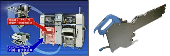 貼裝供給精度要求高的超小元件時(shí),可使用電動(dòng)帶式供料器;其他元件則可使用機(jī)械帶式供料器。電動(dòng)/機(jī)械的同機(jī)使用除了可以滿足用戶多種需求,價(jià)格性能比方面,與占市場(chǎng)主流的電動(dòng)帶式供料器專用貼片機(jī)相比其具有明顯的優(yōu)勢(shì)。