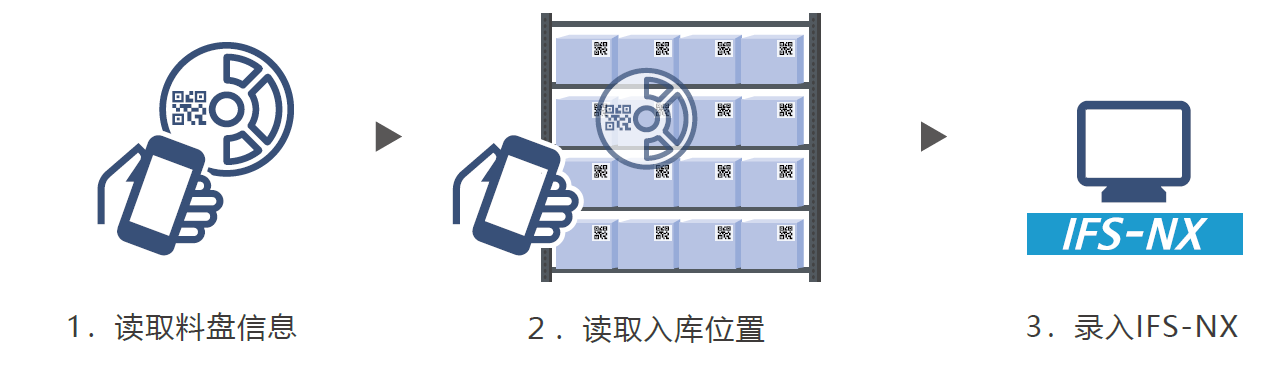 運(yùn)用移動設(shè)備管理外部貨架(入庫)示意圖
