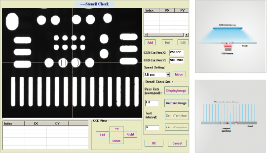 在上部設置面板燈,用下部的CCD 照相機檢查鋼網開口部。