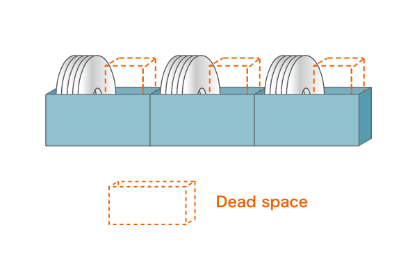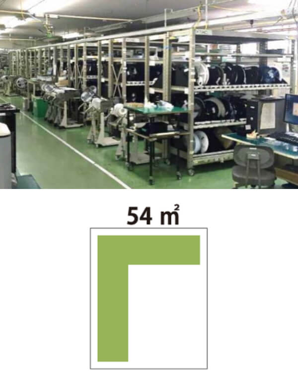 - ISM的高度接近天花板,向上也可以毫無縫隙地收納,因此減少了約60%的零件保管空間