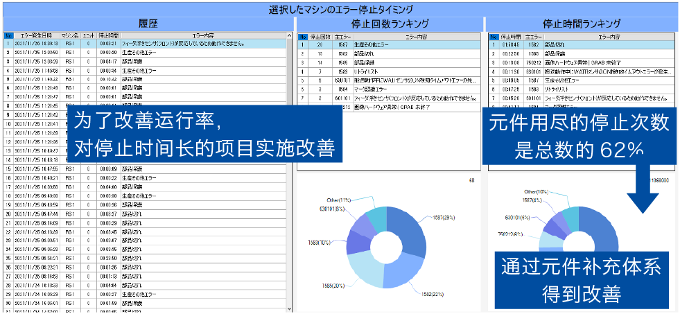 - 由于可實時確認生產狀況、因此更容易捕捉變化點,并縮短了確定原因的時間。