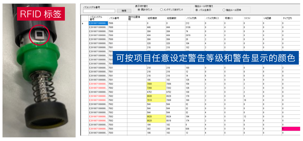 - RFID吸嘴的個(gè)別管理的實(shí)施,明確了吸嘴的更換時(shí)期。