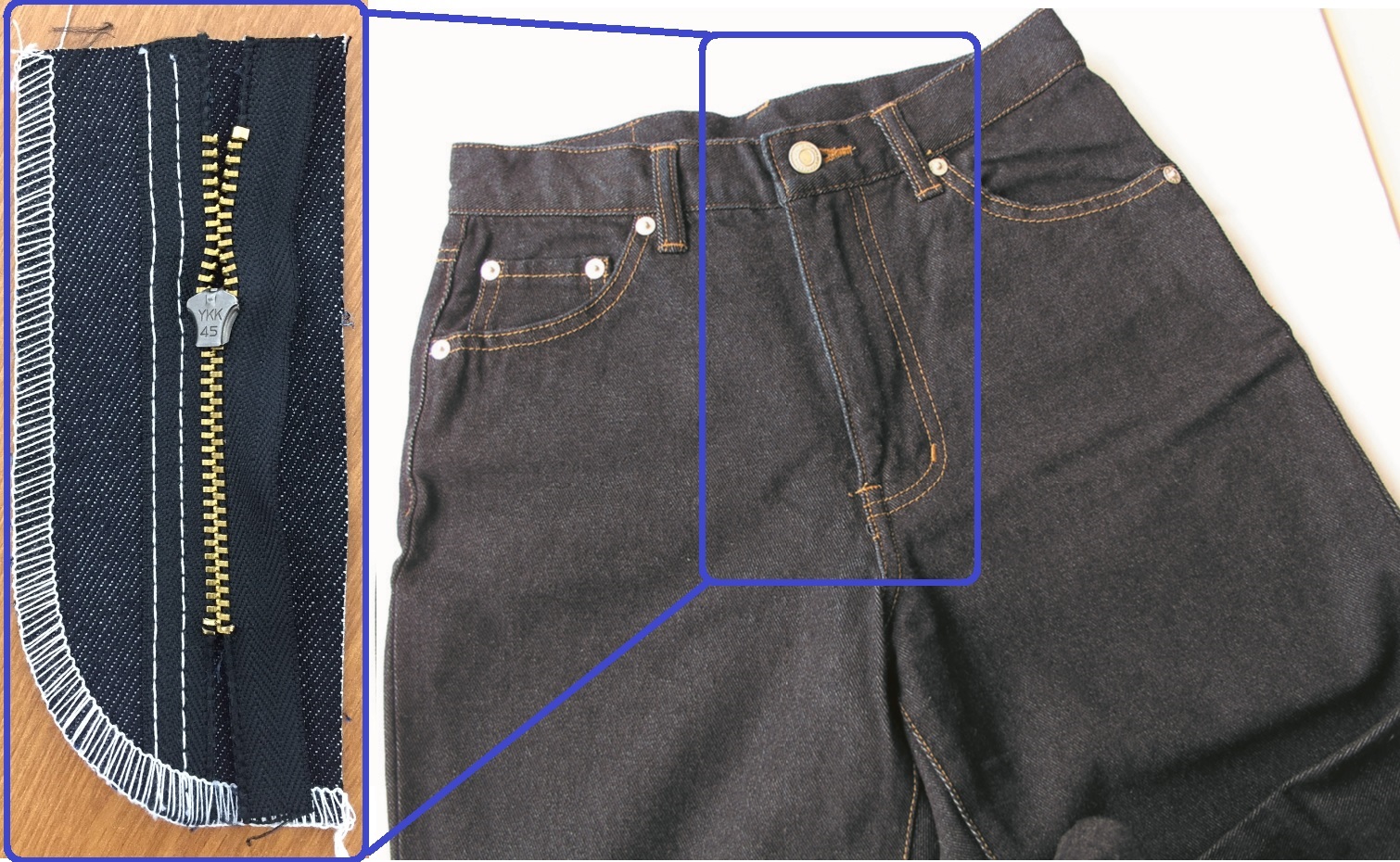 - 牛仔褲門襟